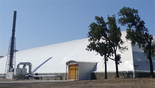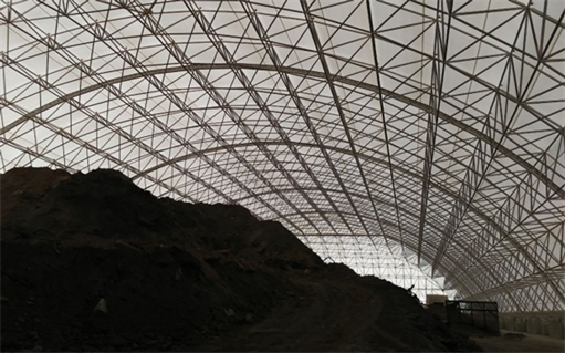 首鋼土壤修復(fù)項(xiàng)目2016年6月建成投產(chǎn),采用負(fù)壓膜封閉技術(shù)建設(shè)的封閉料場(簡稱“負(fù)壓氣膜大棚”)作為其中一個(gè)作業(yè)單元,用于污染土的存儲(chǔ)、預(yù)處理、上料作業(yè)及修復(fù)后合格土的中轉(zhuǎn)暫存。負(fù)壓氣膜大棚長度為135 m,跨度為60 m,凈空高度為20 m,由網(wǎng)殼支撐體系,膜結(jié)構(gòu)屋面,智能管理、控制系統(tǒng),出入門系統(tǒng),送風(fēng)系統(tǒng),尾氣凈化處理系統(tǒng),安全監(jiān)測系統(tǒng),監(jiān)控系統(tǒng),照明系統(tǒng)等組成。目前,負(fù)壓氣膜大棚已經(jīng)通過北京市環(huán)保部門組織的驗(yàn)收,成為我國第一座實(shí)現(xiàn)無廢氣泄漏、地面抗?jié)B漏、可以全天候作業(yè)的環(huán)保型負(fù)壓氣膜大棚,負(fù)壓膜封閉技術(shù)將會(huì)在我國污染土壤的治理與修復(fù)中得到推廣應(yīng)用。